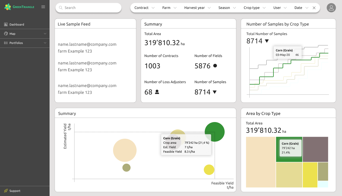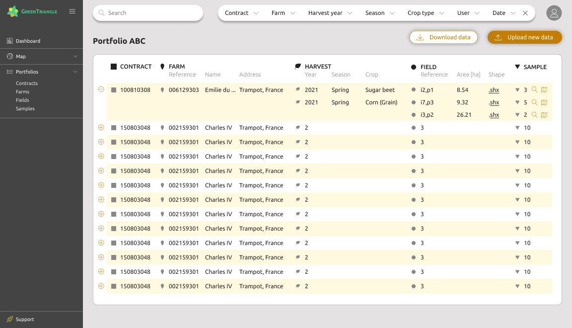 L'application web GreenTriangle est le moyen le plus rapide, le plus sûr et le plus fiable de gérer vos portefeuilles. Obtenez instantanément des données sur le terrain depuis le monde entier et surveillez les performances de vos différents portefeuilles et régions.